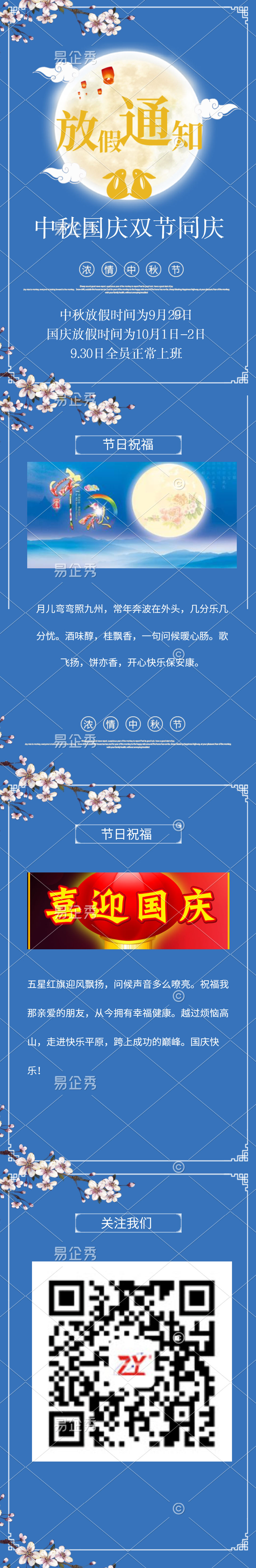 中秋國(guó)慶放假通知